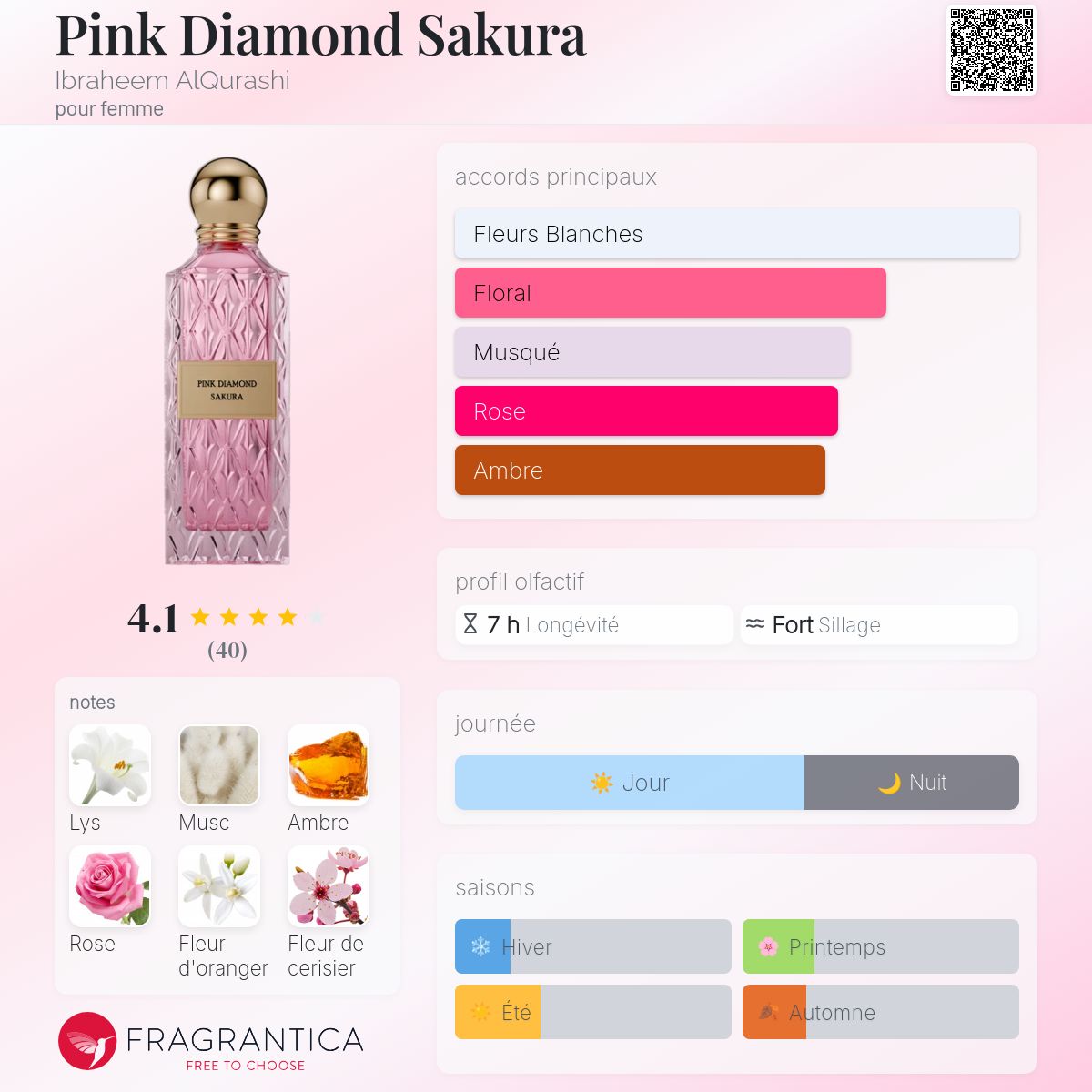Pink Diamond Sakura est un parfum Ambré Floral pour femme, inspiré de Stellar Times de Louis Vuitton.